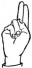 На ћирилици написано ЊЕГОСЛАВ МИЛИВОЈЕВИЋ састоји се из 19 слова [?]. Исписано ћириличном једноручном азбуком за глувонеме: